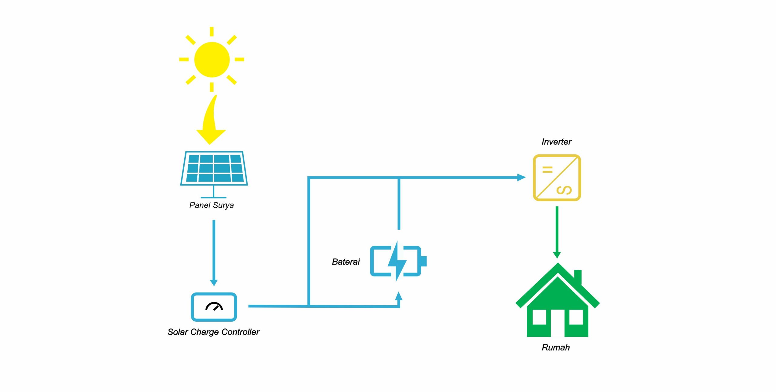 • Berfungsi untuk daerah yang menggunakan energi surya sebagai sumber listrik, seperti daerah yang tidak terhubung dengan jaringan PLN.