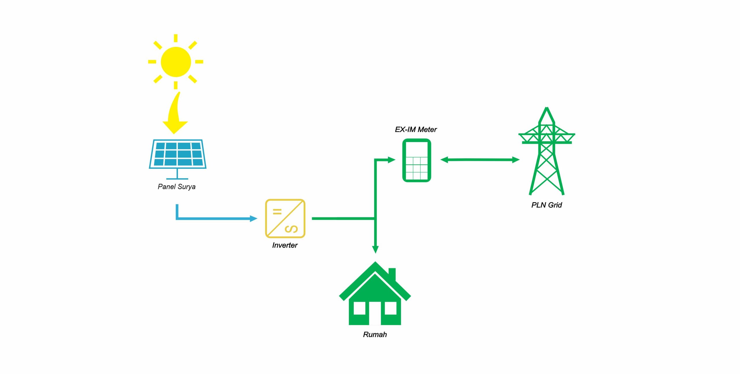 • Sistem On-Grid memungkinkan sistem tetap terhubung dengan jaringan PLN.